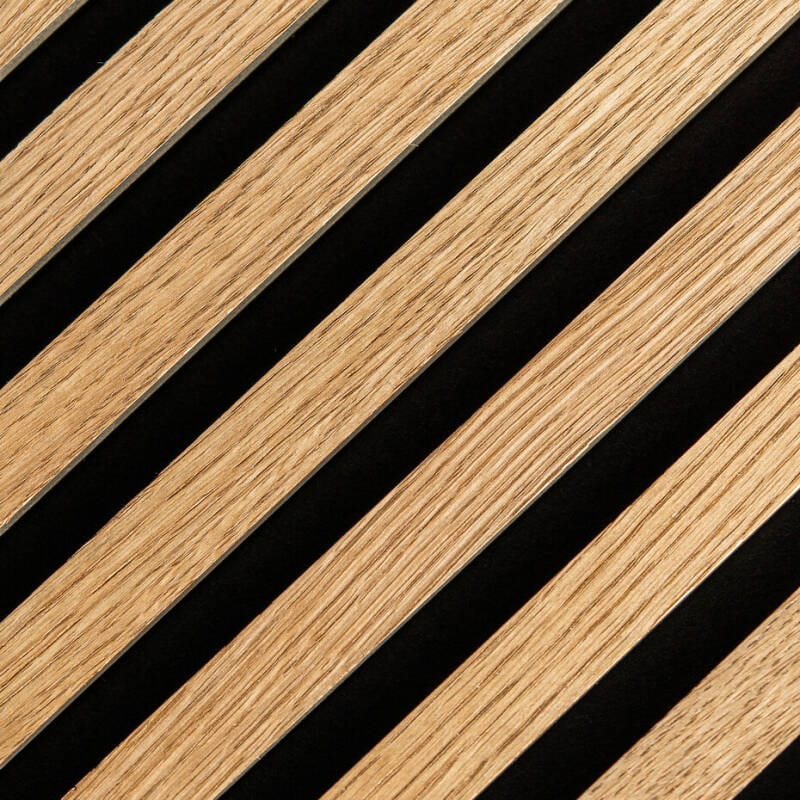 Akoestische wandpanelen voor geluidsdempende wanddecoratie. Brandvertragend, duurzaam en verkrijgbaar in eiken-dessins. Formaat: 52×260 cm of 60×260 cm.