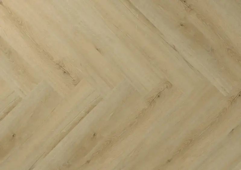 Stijlvolle PVC visgraat vloer — tijdloos patroon, 100% waterdicht en eenvoudig te leggen via het click-systeem.