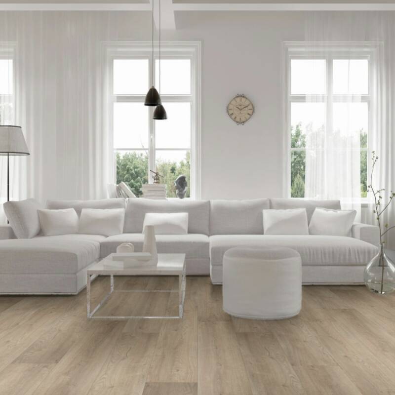 Verlijmde PVC vloer voor een extra stabiel en stil resultaat. Geschikt voor vloerverwarming en drukbezochte ruimtes.
